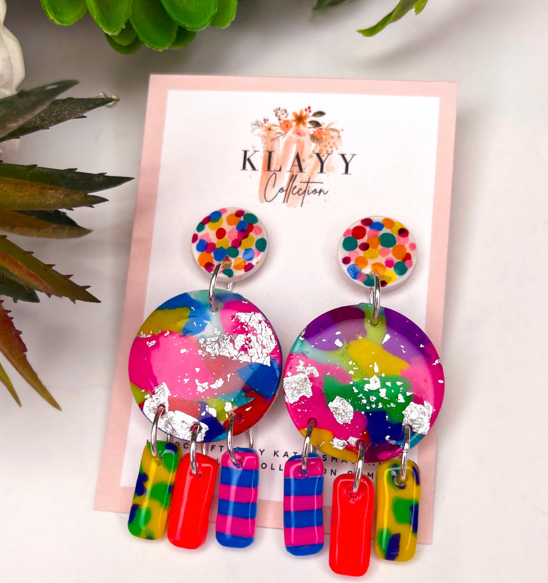 Colour Splash Polymer Clay Earrings With Silver