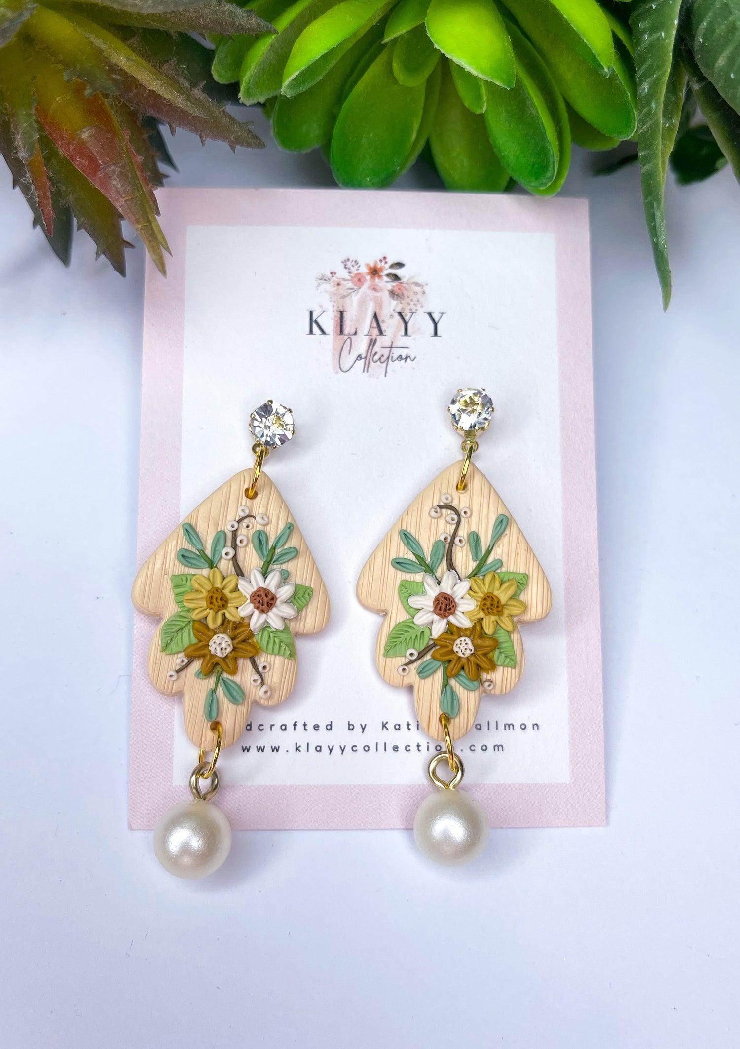 These stunning earrings are the definition of shabby chic! The most beautiful muted neutral tones make the perfect combination! Beautifully designed flower arrangements, lots of detail and a gorgeous stud to top it off! The perfect accompaniment to your favourite boho dress!