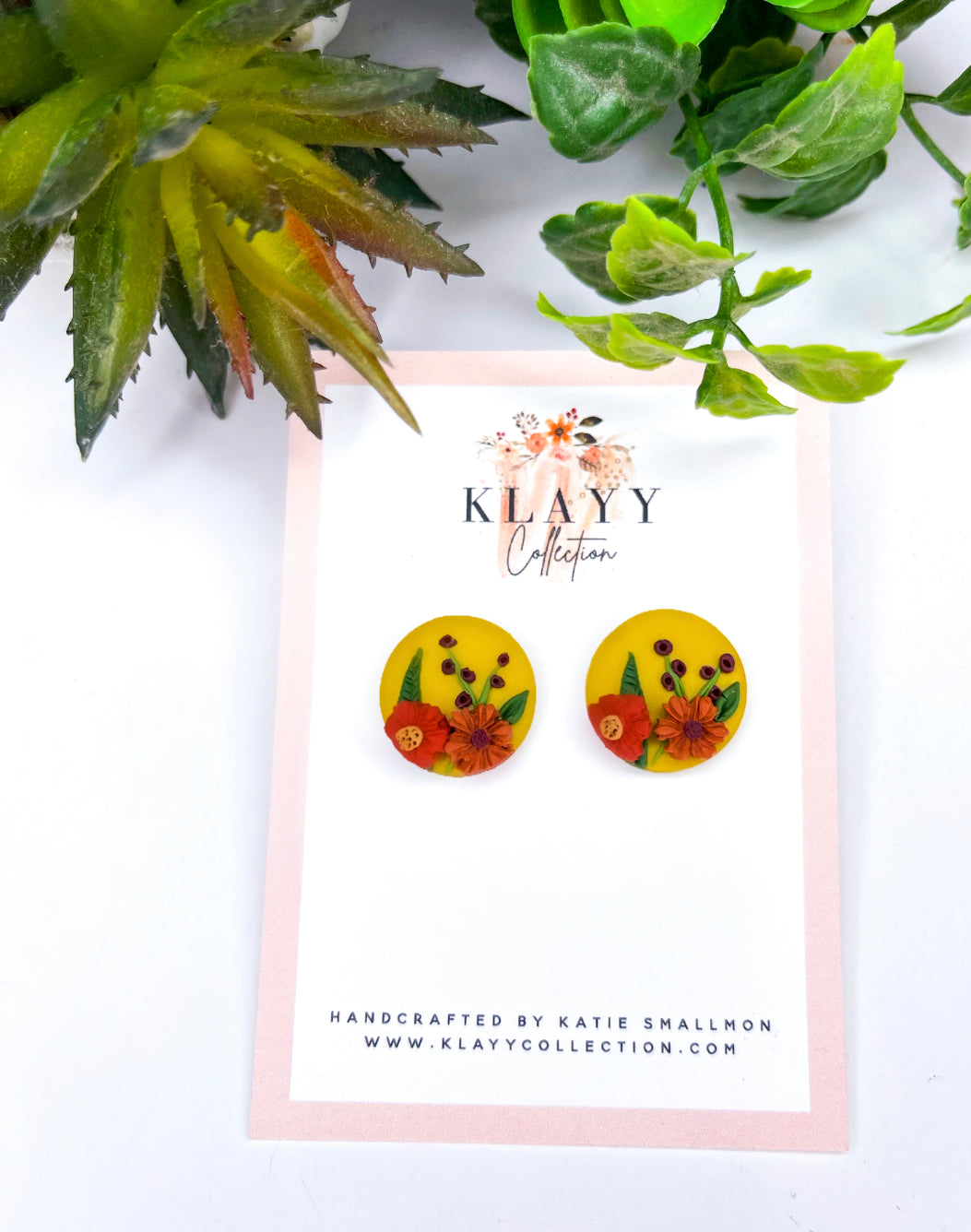 Beautiful mustard and orange tone flower arrangement studs!