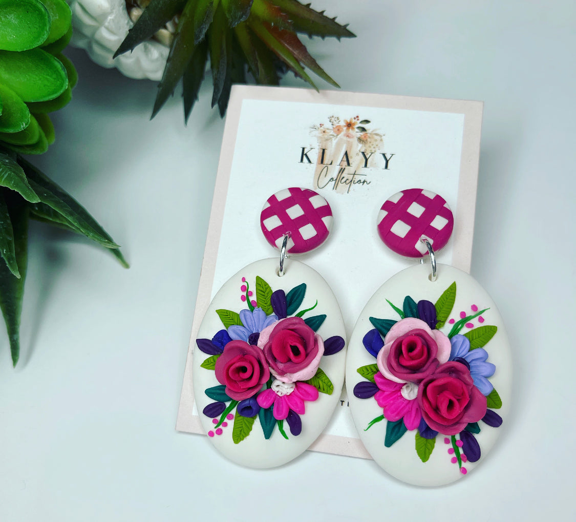 These newly designed polymer clay earrings by KLAYY Collection radiate Summer days!! With vibrant pinks and purples, in a beautiful floral arrangement these earrings will have the perfect shades and tones for your next summer adventure!!