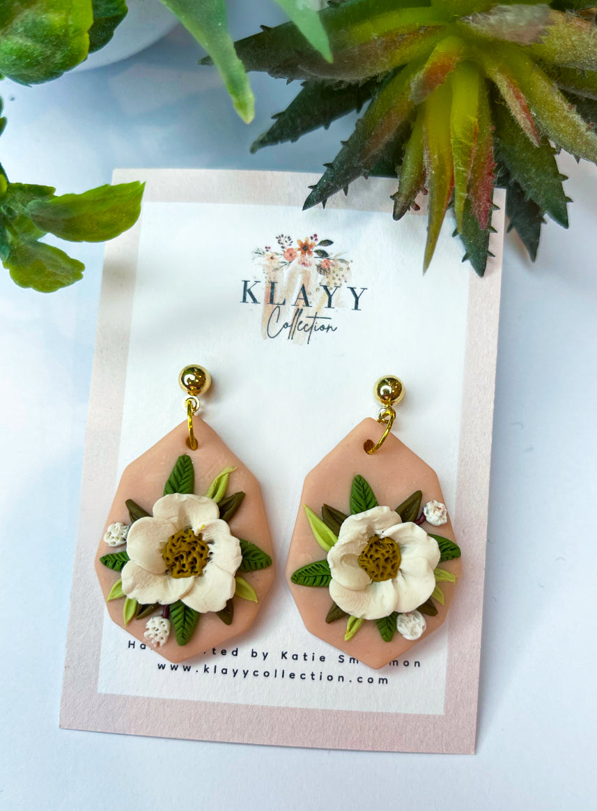 These stunning earrings are the perfect shades of neutral, with beiges and creams and muted tones of green, these beauties can be paired with anything!